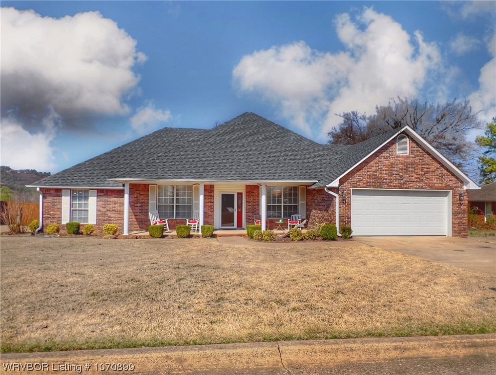 WELCOME HOME! This gorgeous property is located in the highly sought after Woods Addition. There are lots of updates in this home, including granite countertops, stainless steel appliances, and newer roof put on less than 5 years ago! Wood-look ceramic tile throughout the whole home adds warmth and durability! Walking in the front door you are automatically greeted with beautiful tall ceilings and formal dining room. The dining room has a beautiful built-in lighted display cabinet. There is so much charm and character throughout the entire house with lots of built-ins, storage, and cozy gas log fireplace. The primary bedroom boasts gorgeous trayed ceilings, TONS of natural light with so many windows. A door from the primary suite to the oversized deck outside, is the perfect place to spend your mornings with a cup of coffee, or evenings watching the sunset behind Cavanal Hill! A large sunroom, off of the dining room is a ideal place for a green room with plants, a reading room, workout space, etc.. the opportunities are endless. The backyard has an idyllic white picket fence. Location is everything with this home, being located so close to Poteau School, shopping, and dining! Buy this house with peace of mind because sellers are providing a one year home warranty on the home!