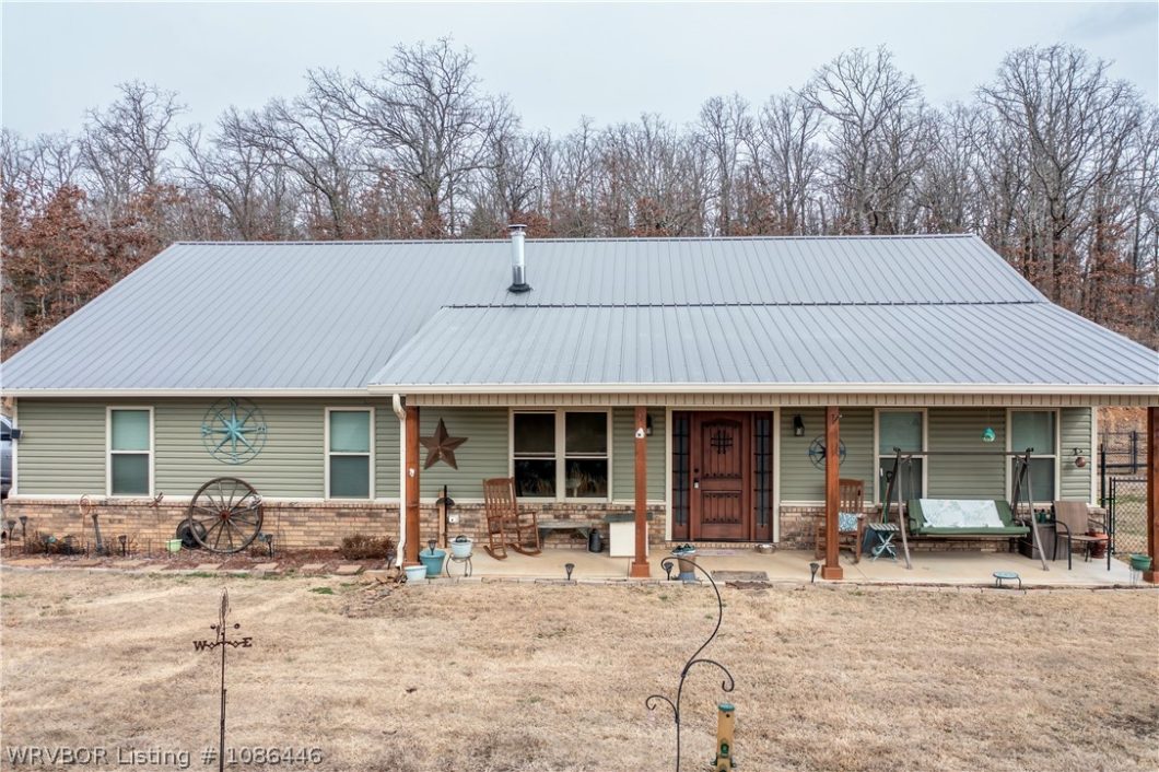 Hunter and nature lovers’ paradise! This exquisite home sits up on a hill on 10 beautiful wooded acres with stunning views! Want the feel of seclusion yet the convenience of being close to town? This home hits the mark. It has all the modern features, including fiber optic WiFi. Cozy up to the wood-burning stove on those cold winter nights while you stream your favorite movie. Features include cute sitting area with arbor, covered front & back porches, tons of closet space, vaulted ceiling in the living room, tray ceiling in the master bedroom, split floor plan for added privacy, storage shed, 2 car garage with shelving for storage and a work bench, spray foam insulation that keeps the electric bill down and lots of wildlife with a very peaceful setting. It is conveniently located close to Ft Smith (11 miles) Sallisaw (10 miles), and 3 1/2 miles to I-40.