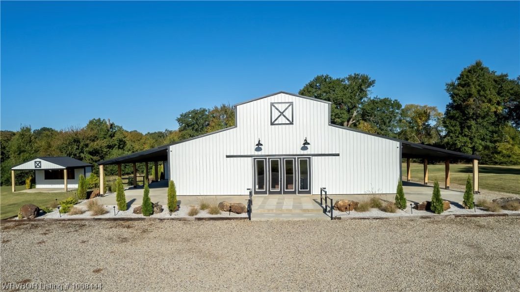 If you have ever had the desire to own your own multiple use event center this could be your opportunity. This beautiful property is complete with all new updates including interior decor in the main hall as well as the men’s and women’s dressing rooms located in the wings of this beautiful venue. With proven and consistent bookings this property not only brings to the table an outstanding setting but also an established successful business income. Future bookings for the venue will transfer to new ownership with the purchase of this location, booking info and financials will be made available to serious inquiries. The purchase of this property will include all decor including the current inventory of tables, chairs, linens, etc. as well as outside decor items such as the antique tractor, horse drawn surrey and more. In addition to the main hall and all it has to offer you will find an outdoor dance area and bar, a beautiful setting for an outdoor wedding event if desired. The possible uses for this property are only limited to your imagination. This property is located approximately 20 minutes from Fort Smith and surrounding areas making it very convenient for office meetings, family birthday parties, seminars and of course weddings and parties. To fully appreciate the beauty of this property schedule a property tour today.