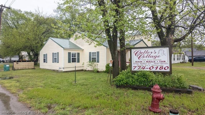 Located right across from the local grocery store, this diverse commercial building has endless options, but comes nearly fully furnished for an operating hair salon! With over 2400 sq ft, there are several 220 outlets wired in for tanning rooms, spa rooms, etc., w/d connection, all electric, and has had tons of updates, including electrical, HVAC, plumbing, etc., from the original build. With so much to offer, this is an incredible opportunity for someone to revive this business in a community experiencing growth! This location also has a possible opportunity to obtain residential zone permit (contact City of Sallisaw) and with a little creativity, could be remodeled for so many possibilities!
