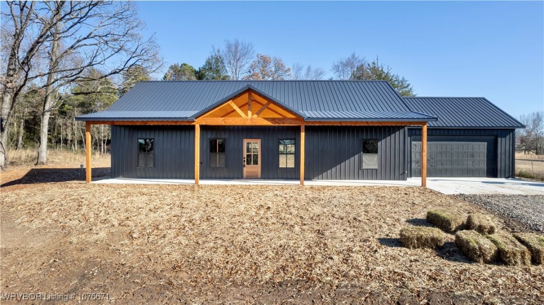 PICTURES COMING SOON! Gorgeous country living! Beautiful dark exterior barndo in the Liberty Community! Home is close to Liberty school and is just minutes to Muldrow or Roland and a short drive to Fort Smith! 9 ft cathedral ceilings in the living area and kitchen, vinyl flooring in the living areas and carpet in bedrooms, open floor plan, all on one acre! House is ready for its new owner!
